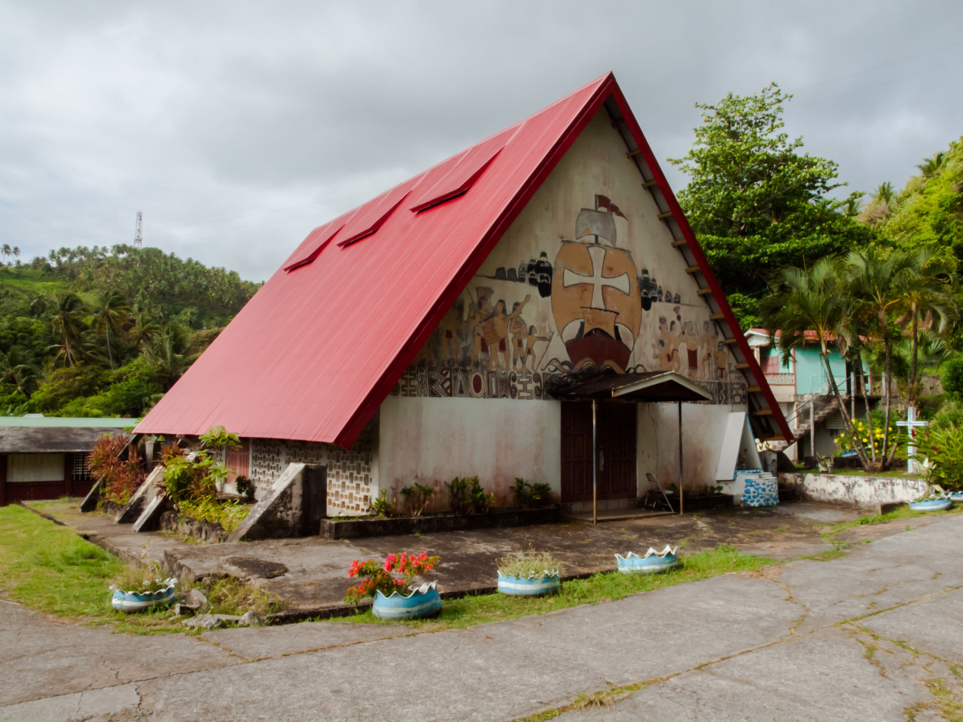 The Church at Salybia features an altar that is actually a traditional Kalingo canoe. Colourful murals adorn both the interior and exterior walls. The design follows the traditional Kalinago Karbet shape.